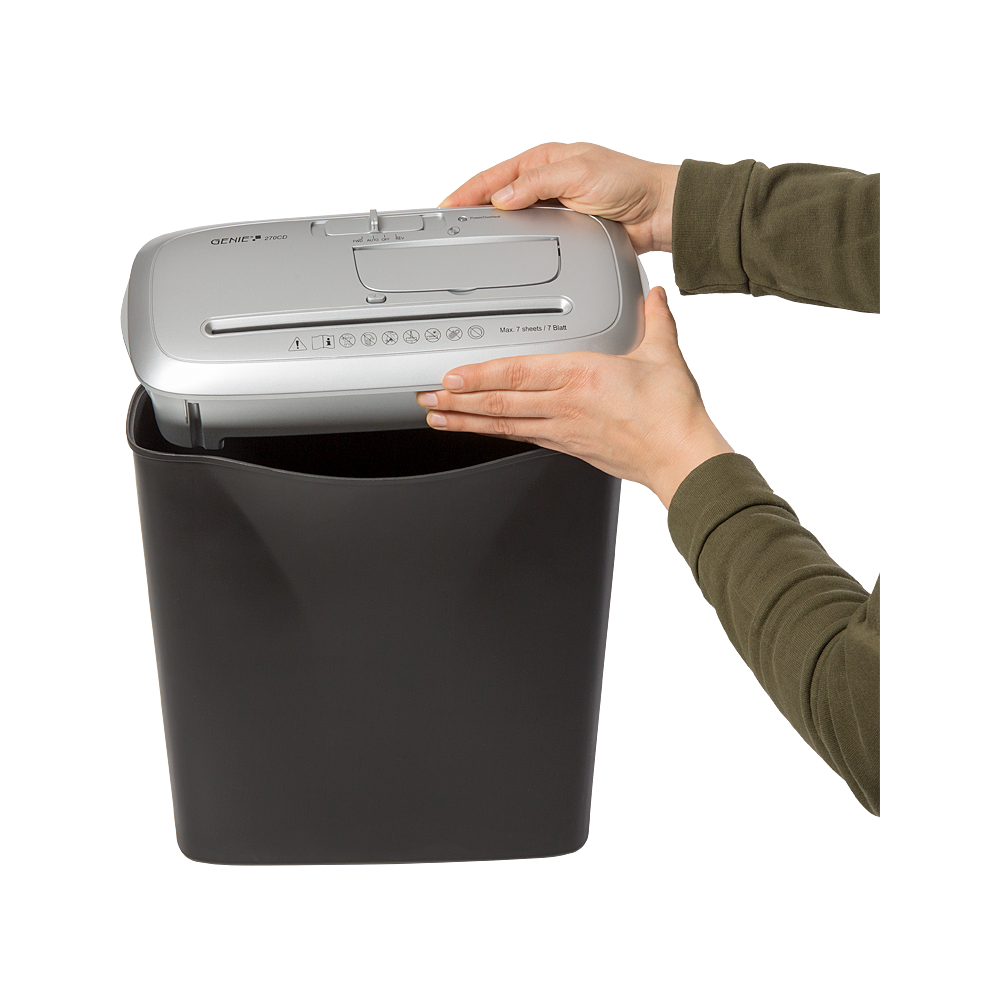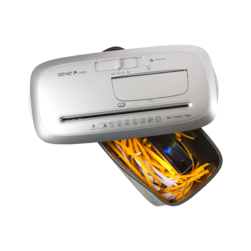 Skartovač Genie 270CD pomôže ochrániť vaše dáta v domácnosti či malej kancelárii. Skartuje naraz 7 listov bežného kancelárskeho papiera A4 / 80g, a to na prúžky o šírke cca 6 mm. Do plastového koša s objemom 13 litrov sa zmestí približne 40 skartovaných papierov.