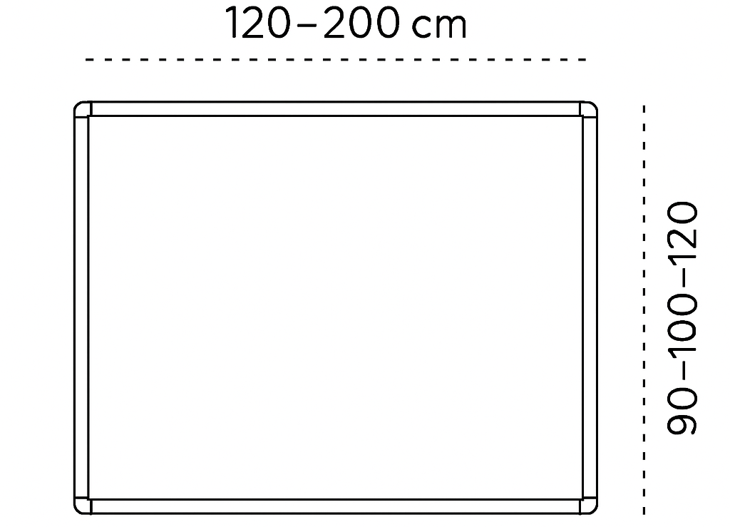 Je určený pre jednostranné tabule s výškou 90, 100 alebo 120 cm a šírkou 120 až 200 cm. Vďaka tejto širokej kompatibilite je možné ho použiť pre rôzne formáty tabúľ od menších až po väčšie a uplatnenie nájde v školách, kanceláriách, zasadacích miestnostiach aj školiacich centrách, kde sa často mení usporiadanie miestnosti alebo spôsob práce s tabuľou.