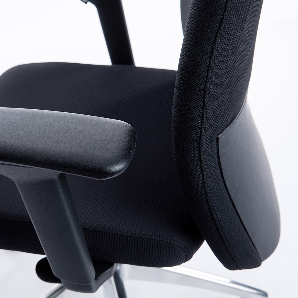 je profesionálnym riešením pre používateľov, ktorí vyžadujú maximálny komfort, spoľahlivosť a ergonómiu pri dlhodobej práci. Vďaka kombinácii moderného dizajnu, odolných materiálov a pokročilých funkcií poskytuje prvotriednu oporu a pohodlie aj pri každodennom používaní. Sedák je čalúnený nehorľavou látkou a vyplnený vstrekovanou penou, ktorá si dlhodobo zachováva svoj tvar. Robustná opierka chrbta zabezpečuje stabilnú podporu a vďaka synchrónnemu mechanizmu sa stolička prispôsobuje pohybom tela, čím podporuje zdravé sedenie. Súčasťou sú aj nastaviteľné podrúčky, ktoré zvyšujú celkový komfort pri práci.