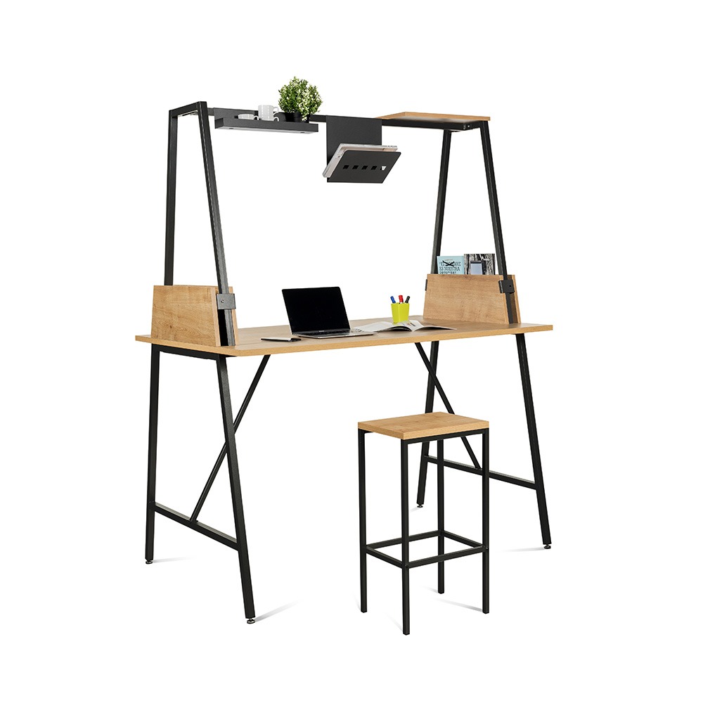 je moderným a praktickým riešením pre pracovné aj spoločenské priestory. Kombinuje melamínové sedadlo v dekore duba s pevnou kovovou konštrukciou v antracitovom prevedení, ktorá zaručuje stabilitu, dlhú životnosť a elegantný vzhľad. Vďaka svojmu minimalistickému dizajnu sa výborne hodí do kancelárií, zasadacích miestností, kuchýň i barových kútov. Ideálna je ako praktické sedenie k barovým stolom alebo na pohodlné posedenie v spoločných a oddychových priestoroch.